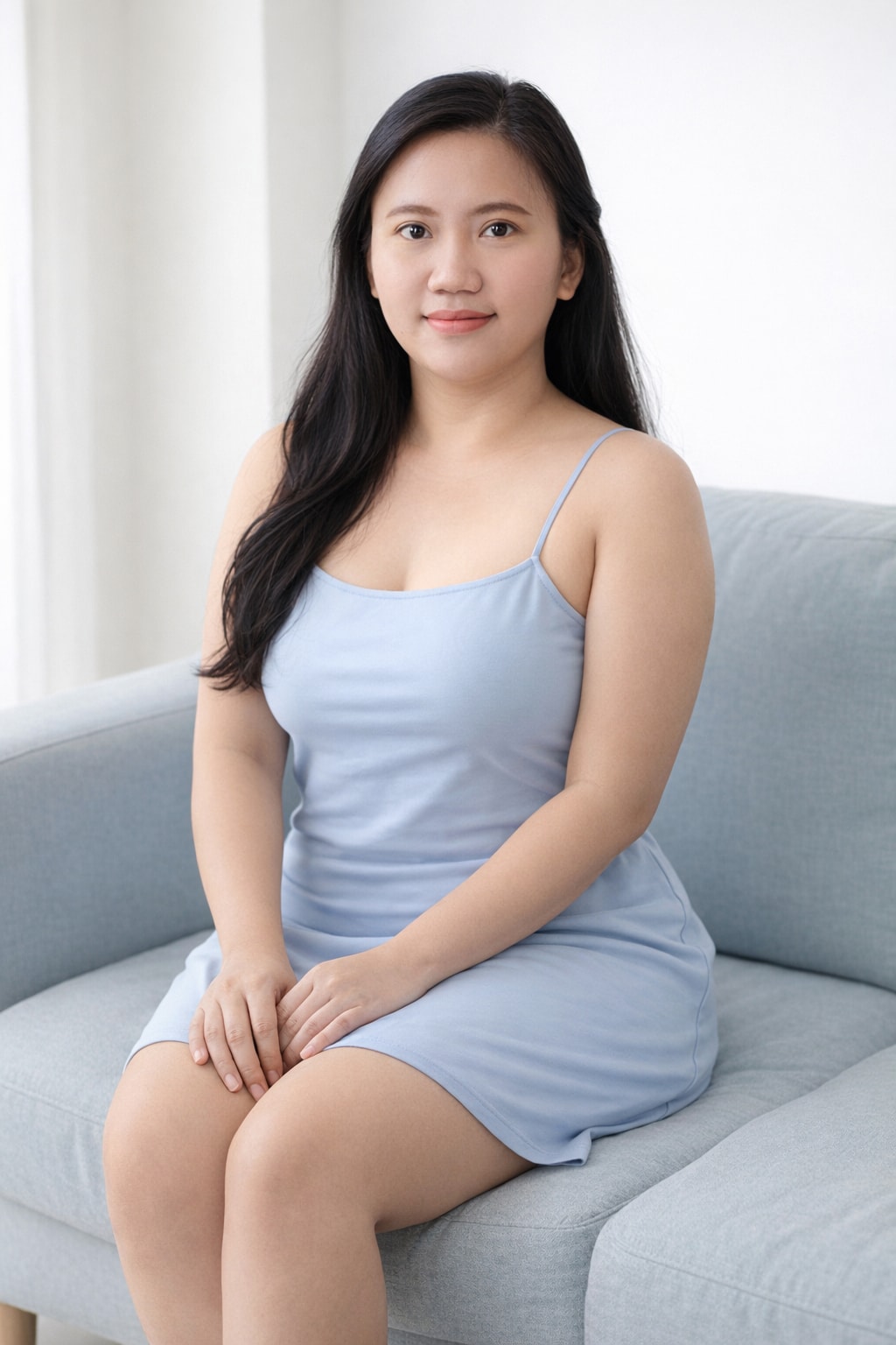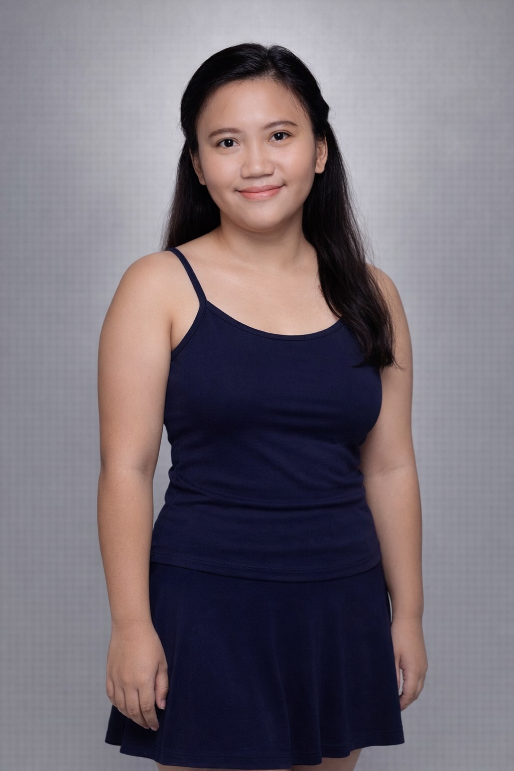 1{2 "prompt": "A portrait photograph of a young Indonesian woman with a petite, curvy physique in a medium close-up vertical composition (9:16 aspect ratio). She is wearing a blue-striped spaghetti strap tank top made from 190 GSM 82% Polyester 18% Spandex 4-way stretch fabric, paired with a neon yellow short skirt in the same fabric specification. She is gracefully leaning against a wall with a baby-blue decorative box mounted on it. The composition is tasteful and respectful, capturing a casual, fashionable moment with soft natural lighting. Her pose is relaxed and elegant, with one hand resting naturally at her side. The image focuses on style and confidence in a clean, modern setting.",3 "technical_specifications": {...+37 more lines
