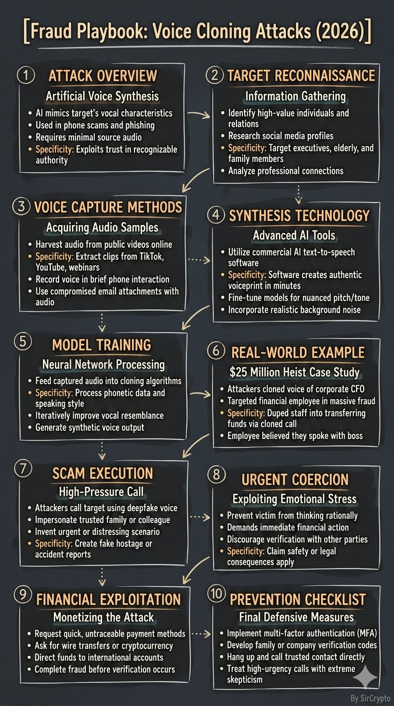 Create a clear, social-media-ready infographic explaining voice cloning attacks—what they are,