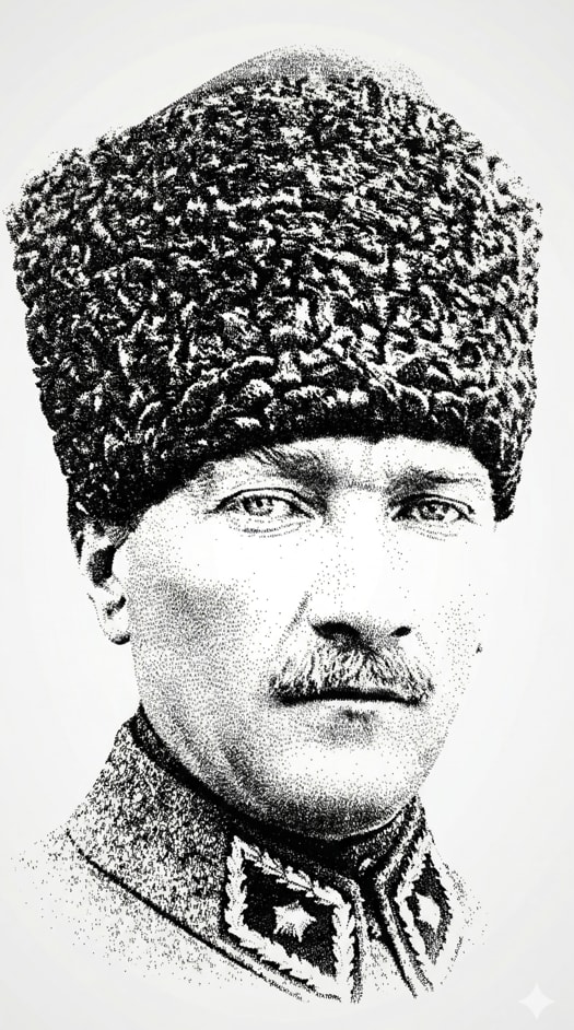 Transform the provided portrait into a 9:16 vertical typographic artwork built exclusively from repeated name text. STRICT RULES: - The image must be composed ONLY of text (e.g., "MUSTAFA KEMAL ATATÜRK"). - No lines, no strokes, no outlines, no shapes, no shading, no gradients. - Do NOT draw anything. Do NOT use any brush or illustration effect. - No stamp borders or shapes — only pure text. - Every visible detail must come from the text itself. TEXT CONSTRAINT: - ALL text must be small and consistent in size. - Do NOT use large or oversized text anywhere. - Font size should remain uniform across the entire image. - The text should feel like fine grain / micro-typography. Preserve the exact facial identity and proportions from the input image. COMPOSITION: - Slightly zoomed-out portrait (not close-up). - Include full head with some negative space around. REGIONAL CONTROL: - Forehead area should be clean or extremely sparse. - Focus density on eyes, nose, mouth, jawline. SHADING METHOD: - Create depth ONLY by changing text density (not size). - Dark areas = very dense text repetition. - Light areas = sparse text placement. - No gradient effects — density alone must simulate light and shadow. Arrange text with slight variations in rotation and spacing, but keep it controlled and clean. Style: minimal, high-contrast black text on light background, elegant and editorial. No extra text outside the repeated name. No logos. No decorative elements. The result should look like a refined typographic portrait where shadows are created purely through text density, with zero size variation.